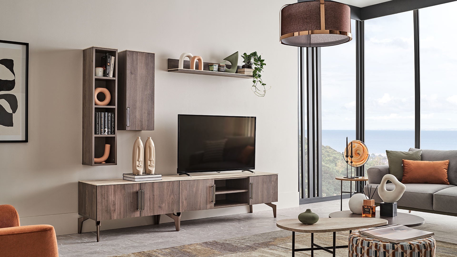 Envie de personnaliser votre coin TV avec le meuble TV Piero ? Découvrez dès maintenant tous ses modules ! Apportez une touche boisée à votre coin télé grâce au meuble TV Piero. Si vous recherchez un coin élégant, le meuble TV Piero est la solution idéale. De plus, vous pouvez combiner ses modules selon la taille de votre espace. Si votre coin télé est petit, utilisez uniquement les modules du bas pour gagner de la place.