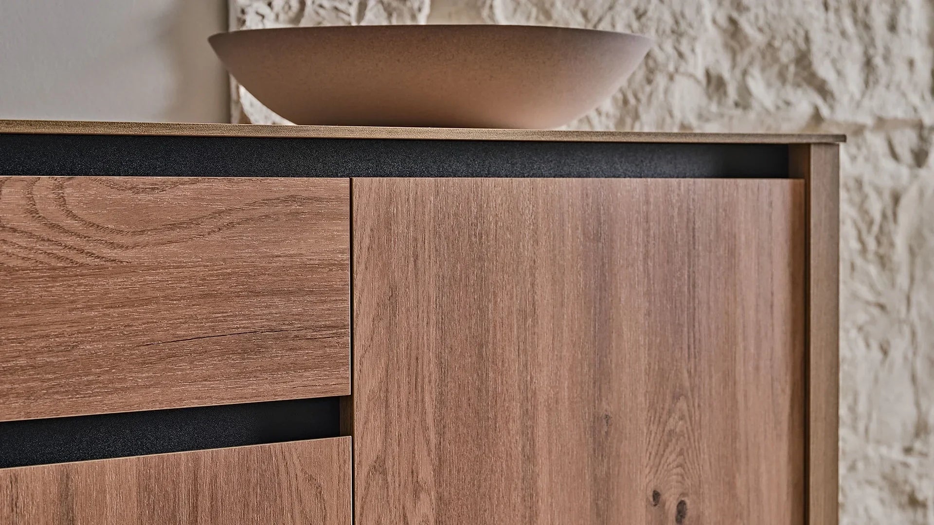 - Bois naturel de couleur Varna combiné avec des détails en métal