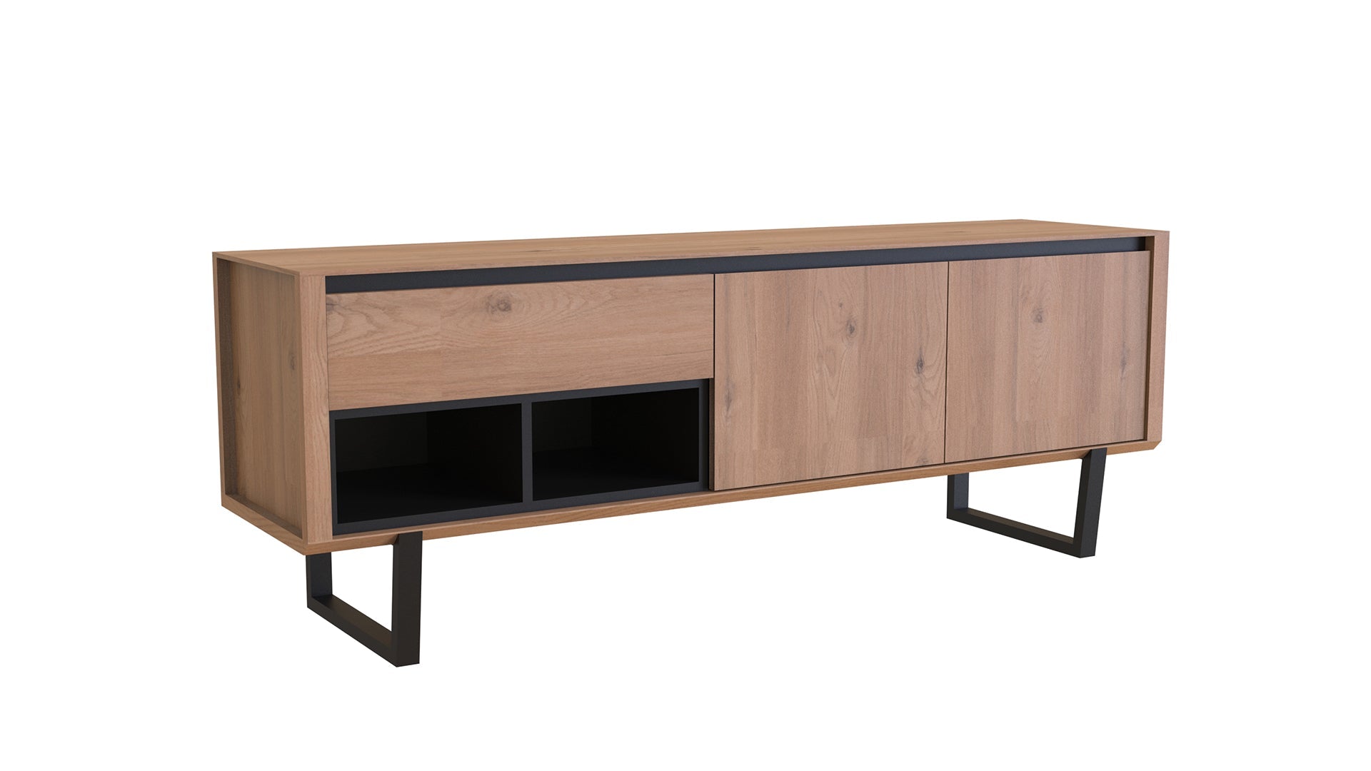 L'ensemble de salle à manger Solid, alliant le naturel du bois teinté Varna au métal, embellit votre espace grâce à sa fonctionnalité et son design élégant. Ce modèle reflète un goût raffiné avec des armoires sans poignées, des pieds hauts et des lignes épurées.