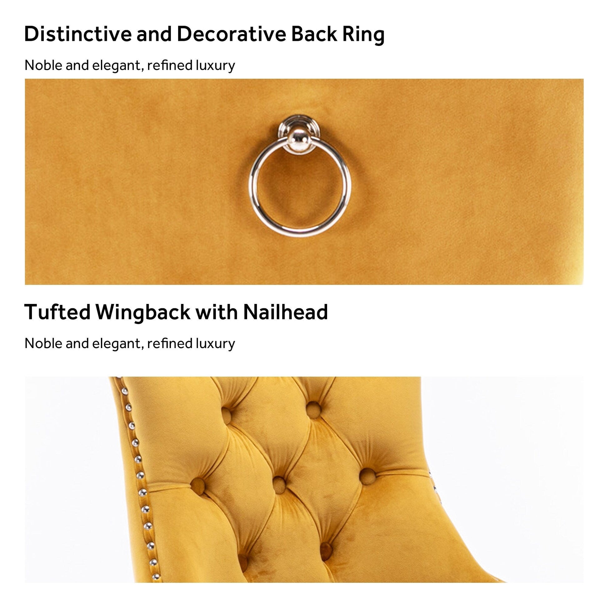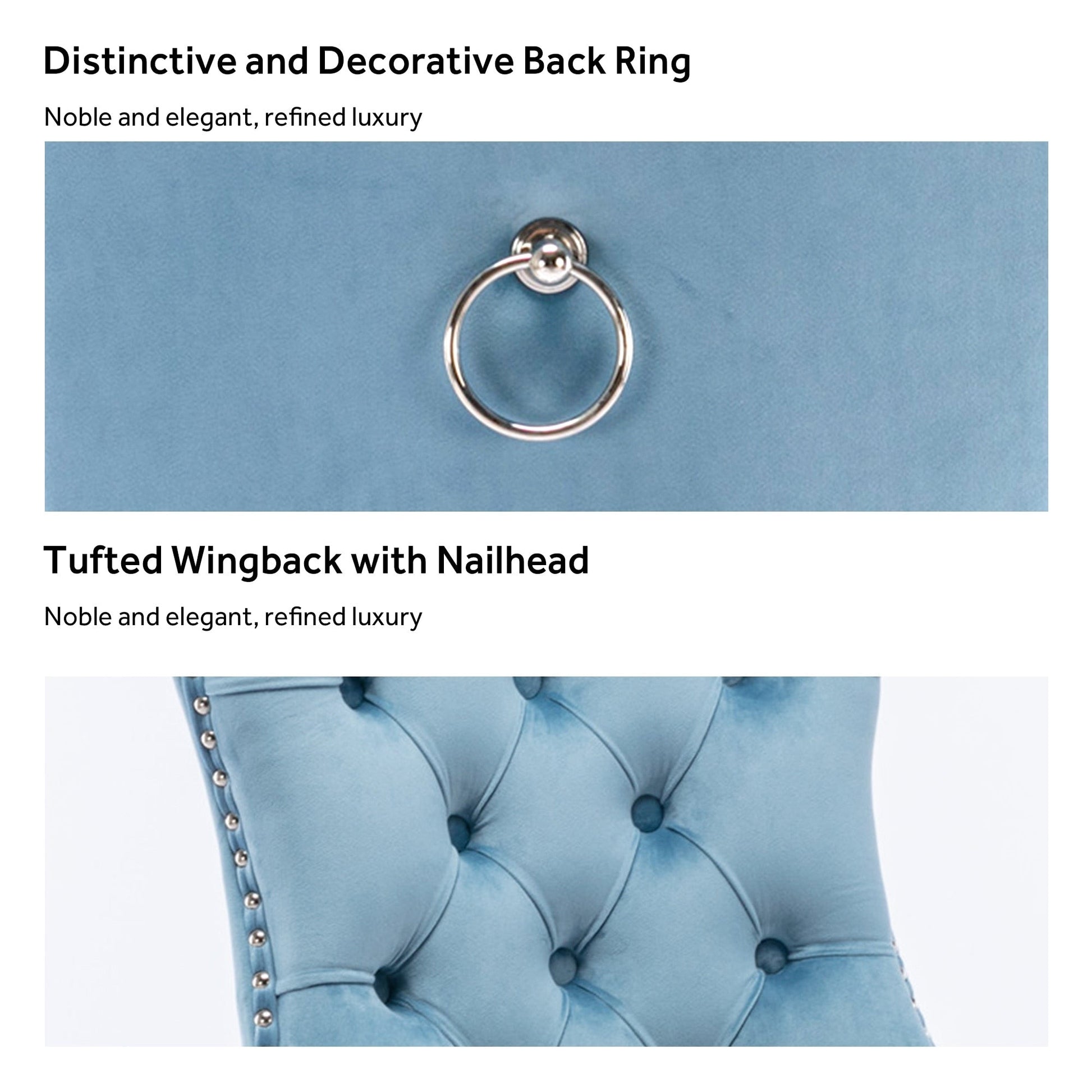 Ces chaises de salle à manger à oreilles sont fabriquées en velours de haute qualité, très résistant à l'usure et à la décoloration. Épais et luxueux, ce tissu offre un toucher délicat. Cet ensemble de chaises en velours arbore un style Mid-Century très moderne. Son dossier haut offre un soutien confortable et solide. De nombreux rivets décoratifs ornent le coussin et le dossier, lui conférant noblesse et élégance, tout en lui conférant une sensation de luxe raffiné. Nous fournissons des instructions et des vidéos de montage. Pour toute question, n'hésitez pas à nous contacter.