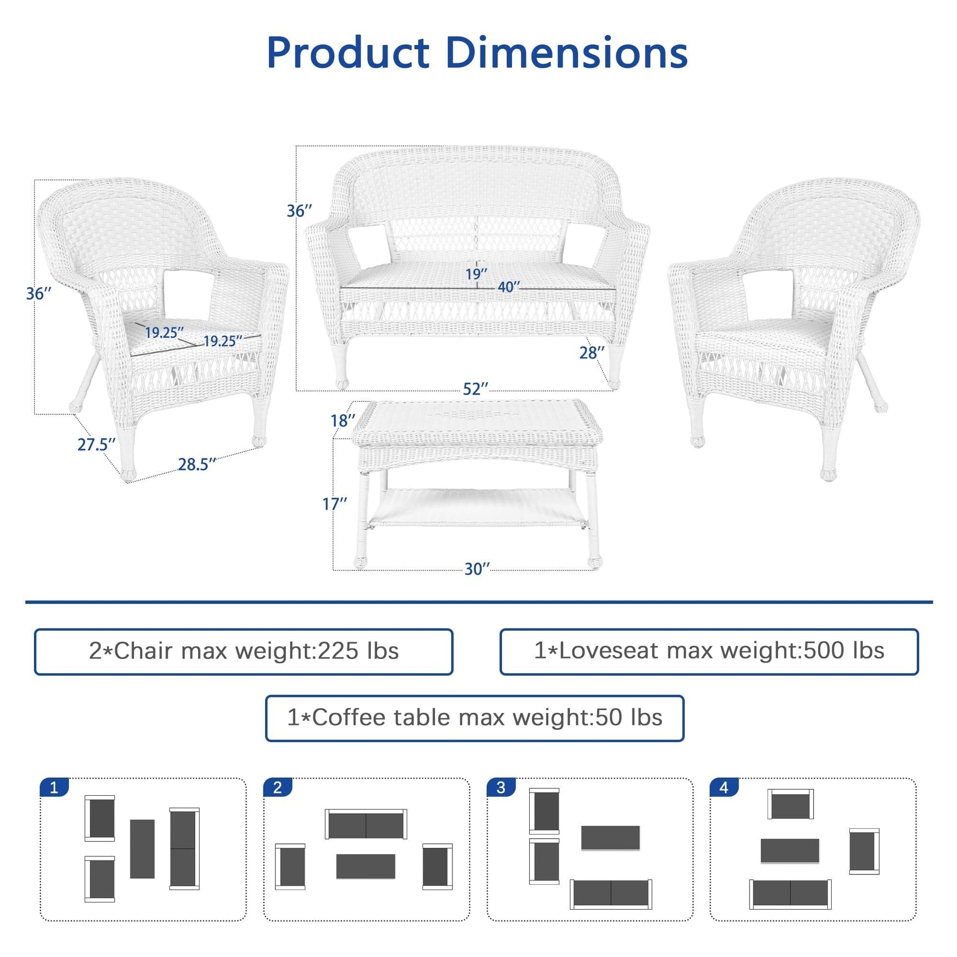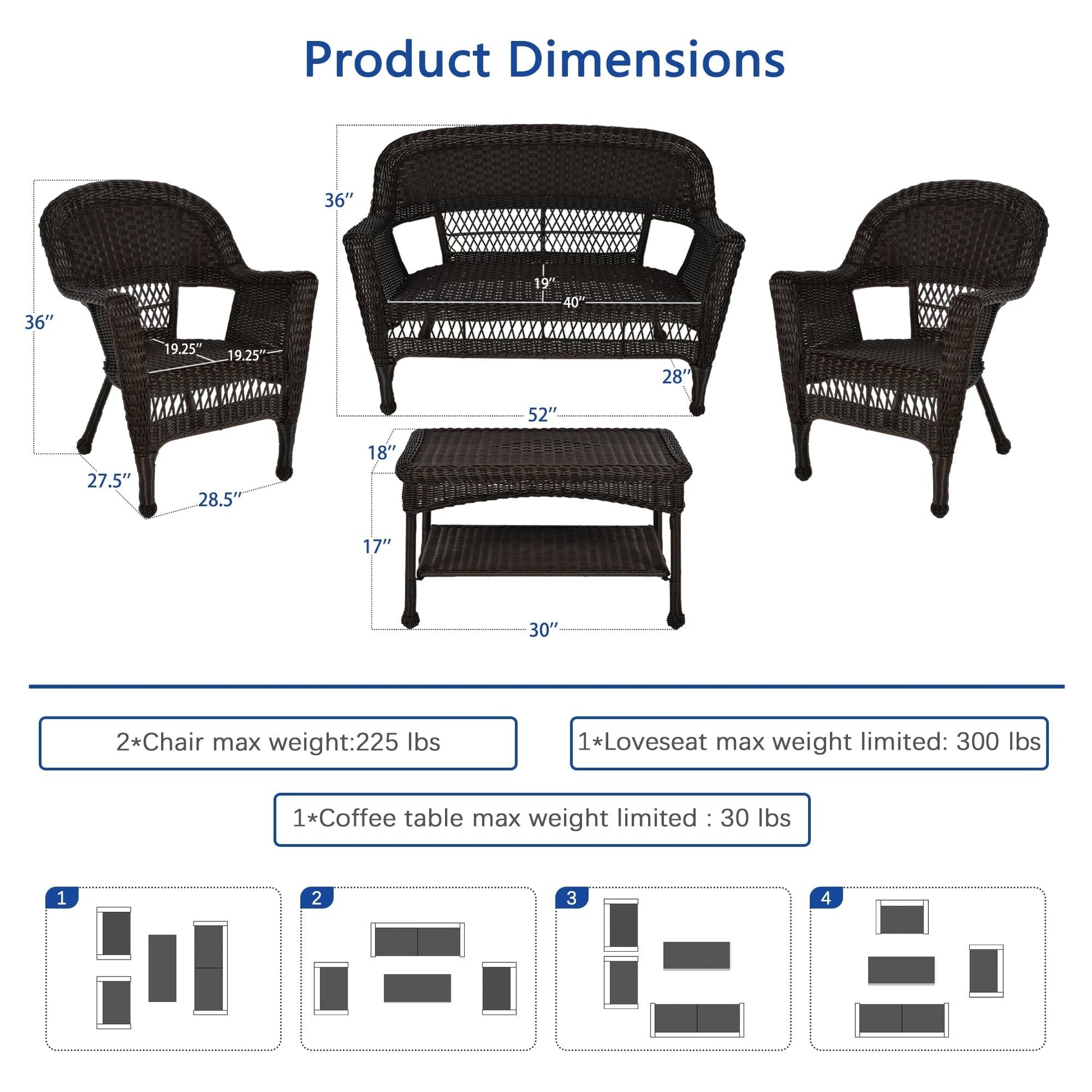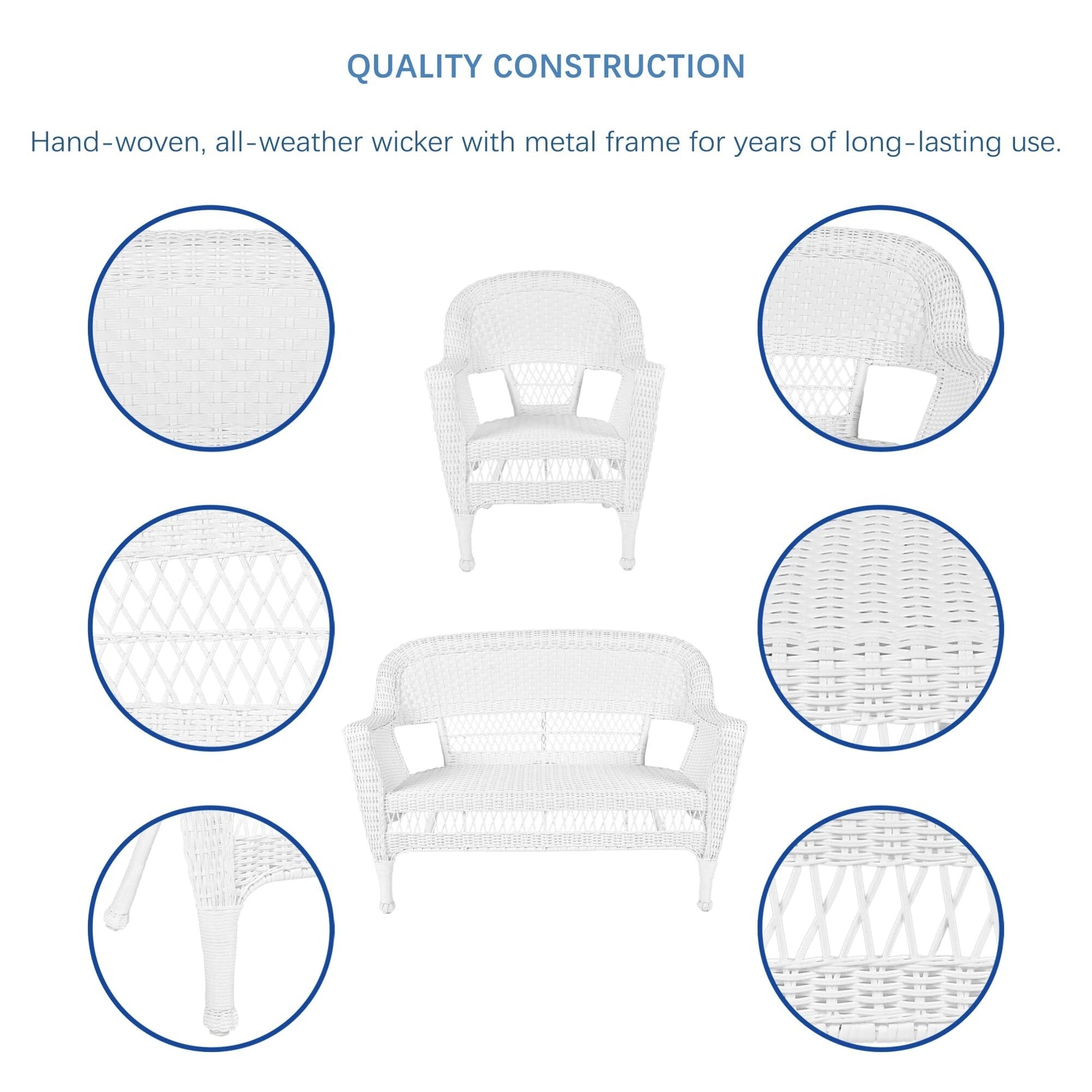 Ensemble de conversation 4 pièces pour patio en osier