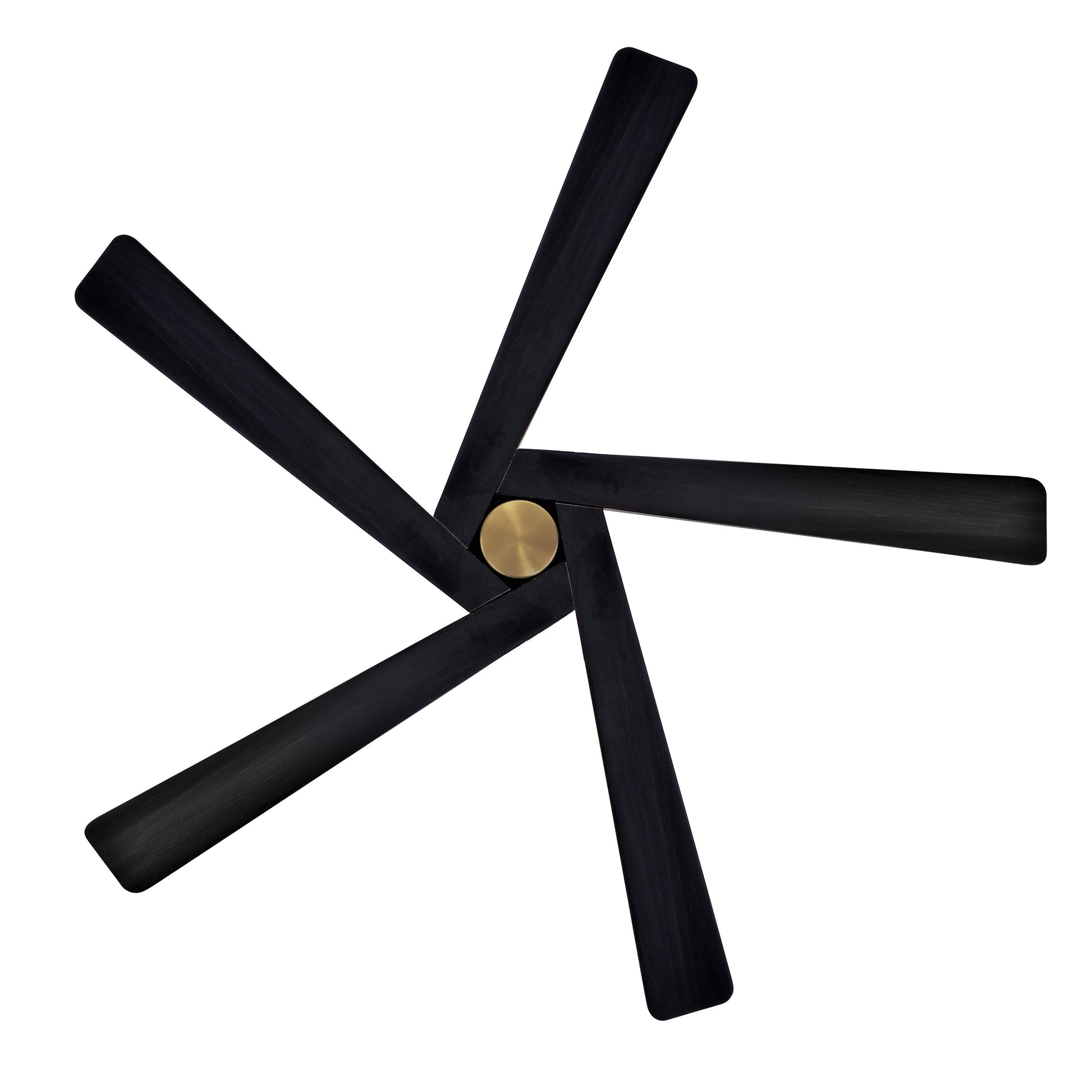 - Déclaration de style audacieuse, la conception de ce ventilateur de plafond de transition présente une silhouette élégante et des pales en bois sculptées à la main