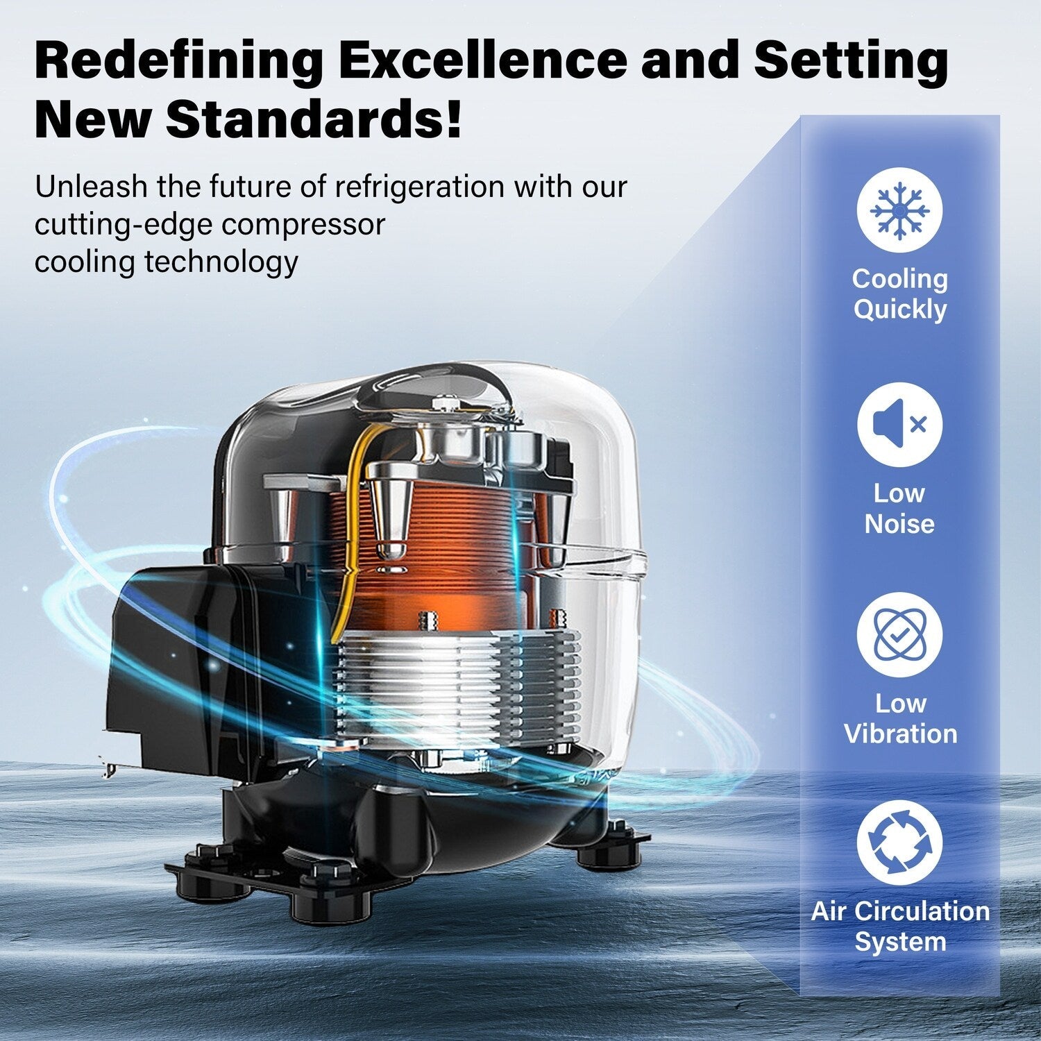 - Refroidissement rapide et écologique : Grâce au réfrigérant R600a avancé, ce réfrigérateur à boissons refroidit rapidement et uniformément en seulement 40 minutes. Ce système de refroidissement écologique est certifié DOE pour son efficacité énergétique, réduisant ainsi votre consommation d'énergie et votre impact environnemental tout en offrant une performance de refroidissement optimale.