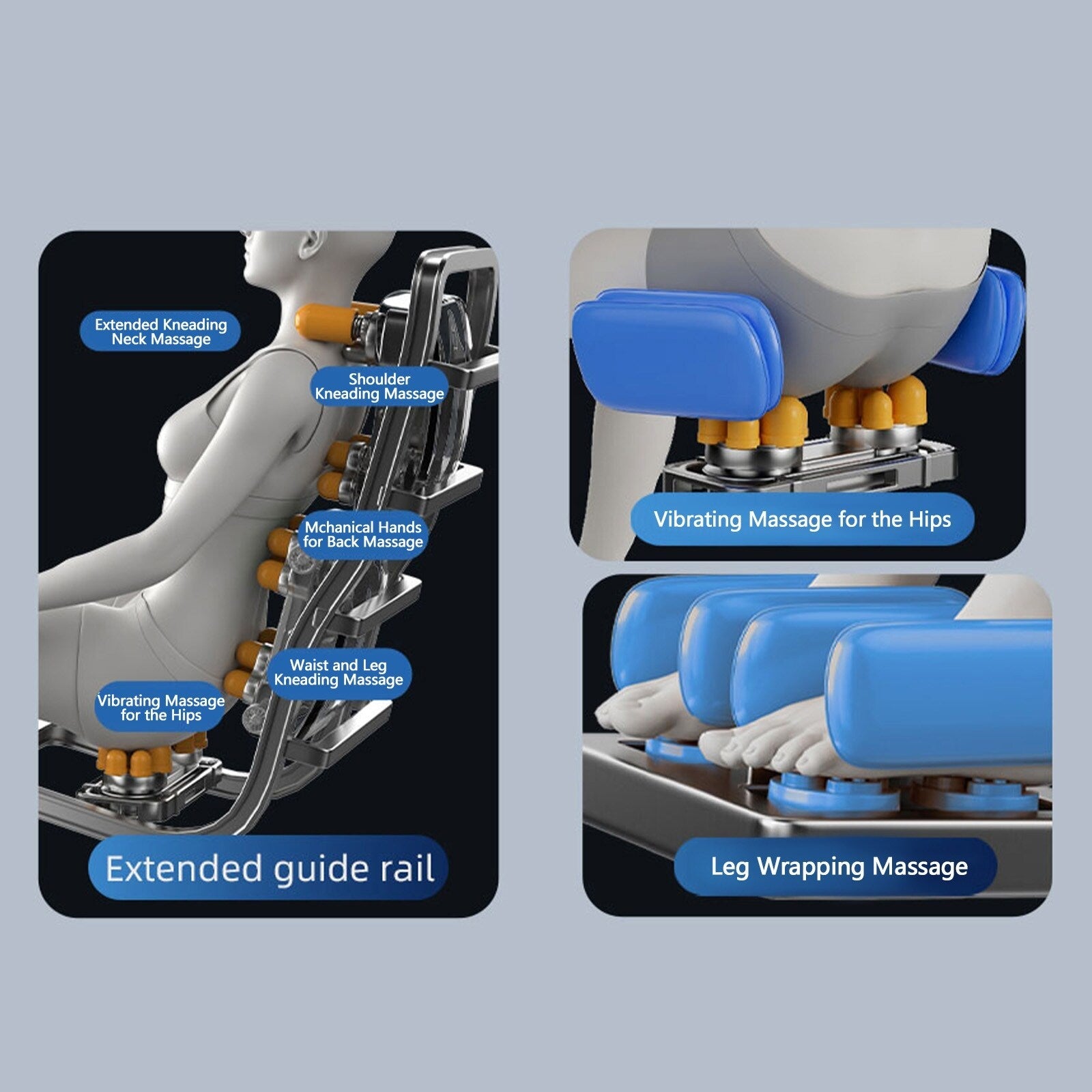 Ce fauteuil de massage simule l'apesanteur , alignant parfaitement votre cœur et vos genoux. Cette position réduit efficacement la tension cardiaque, favorise la circulation et soulage la pression vertébrale, contribuant ainsi à une relaxation profonde.